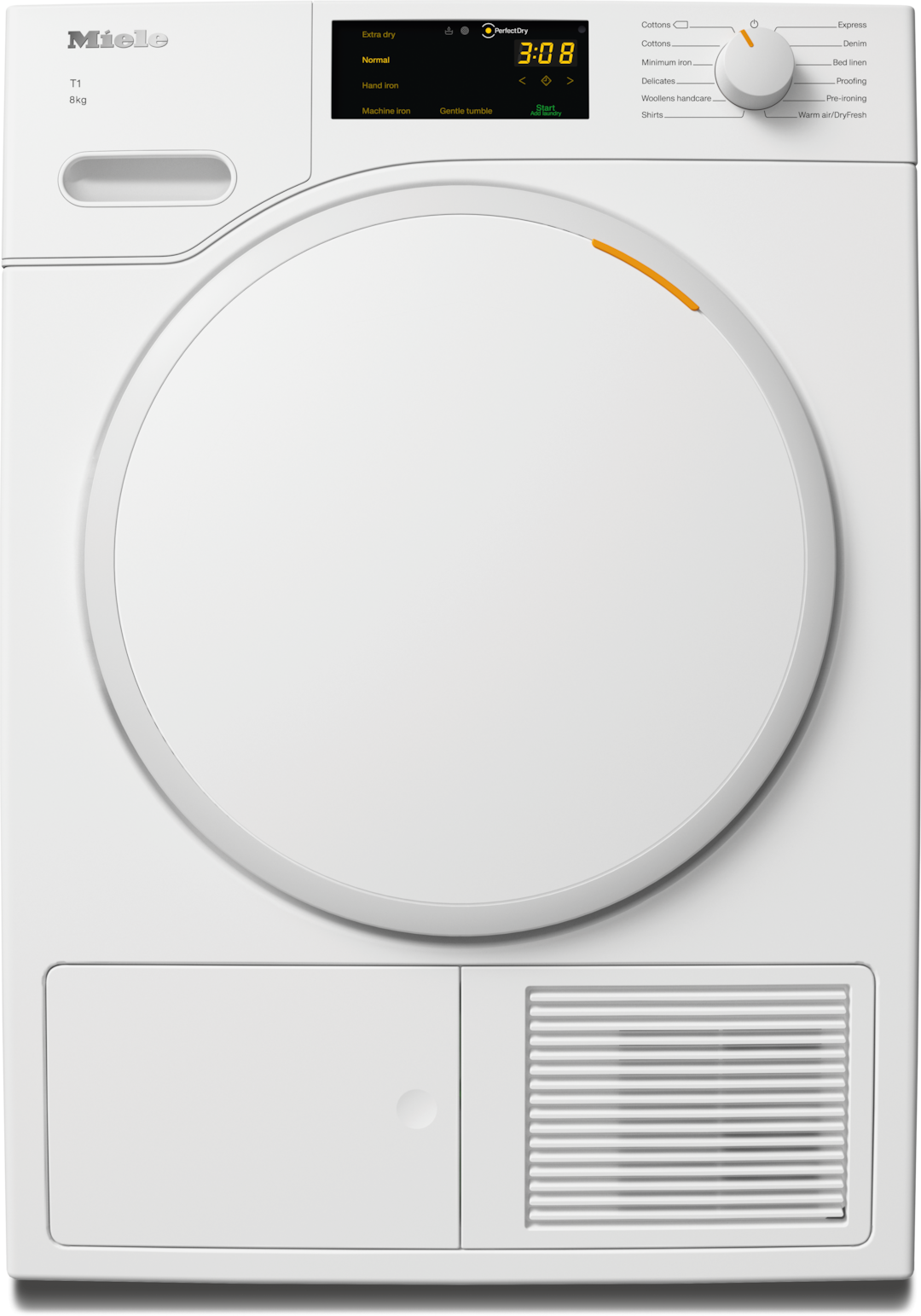 - 3.During the development phase of the T1 / T2 tumble dryer series, Miele tested models and core components in 5000 drying cycles (= 5 drying cycles per week for 50 weeks per year) in various programmes. More: miele.com/20years